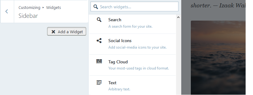 - Klik på Widgets for at vælge et websted element. Vi anbefaler at tilføje koden i "Sidebar"