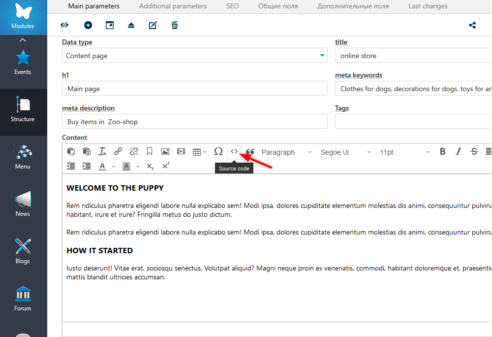 - Öffnen Sie den Bearbeitungsmodus für den Quellcode.