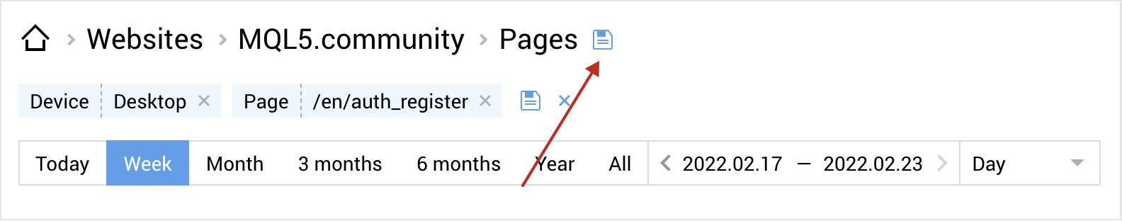 Öffnen Sie den gewünschten Analysebereich, richten Sie Filter ein, geben Sie der Voreinstellung einen Namen und speichern Sie sie. Wann immer Sie einen Bericht mit diesen spezifischen Filtern benötigen, wählen Sie einfach die Voreinstellung aus der Liste aus. Dadurch wird ein Bericht für den gewünschten Zeitraum mit den zuvor ausgewählten Filtern geöffnet. Wenn Sie sich entscheiden, für eine detailliertere Datenanalyse zu einem anderen Bericht zu wechseln, werden die ausgewählten Filter gespeichert, und Sie können dieselbe Zielgruppe aus einer anderen Perspektive weiter untersuchen.