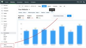Frequently used metric combinations in analytical samples can be saved as a filter. Custom filters are added to the menu on the left hand side and are available from any report section.