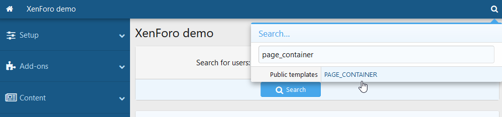 - page_container را در قسمت جستجو تایپ کرده و روی الگوی یافت شده "PAGE_CONTAINER" کلیک کنید.