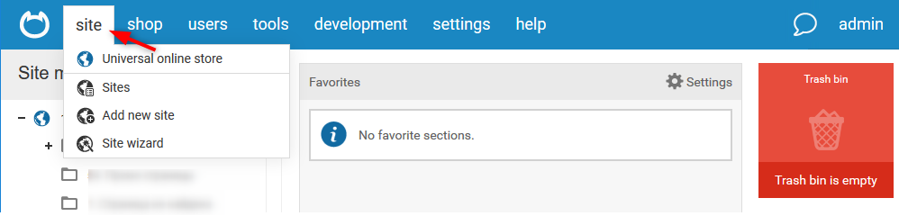 - Login ke situs anda yang dibuat berdasarkan platform NetCat dan pilih situs yang diinginkan jika anda memiliki beberapa situs.