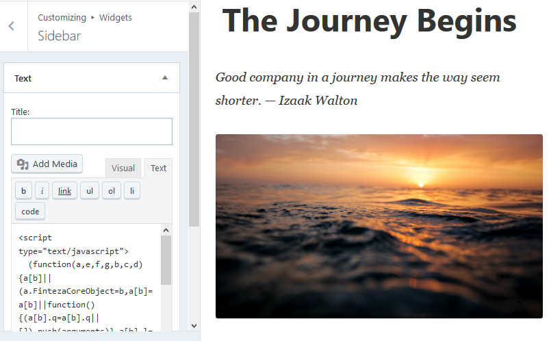 - Việc nay sẽ mở trình chỉnh sửa nội dung, hoạt động ở chế độ trực quan va HTML. Nhấp vao nut Van bản để chuyển sang chế độ HTML va dan mã Finteza. Nhấp vao Dã xong để luu thay đổi.